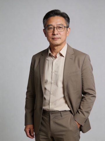 商务感十足的性冷淡风肖像,简约主义构图,实景质感呈现,印刷风色调统一,凸显专业与沉稳。