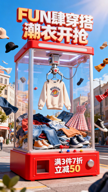 3D微缩艺术风呈现双十一抢购盛宴,鎏金与金属质感结合卡通人物,营造喜庆促销氛围,倒计时数字强化紧迫感。