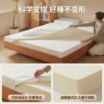 3D重拟物风床垫广告,融合奢华实景感与面料质感,突出舒适体验与促销信息,夜景酒店背景增强高端氛围。