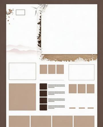中式工笔风与水墨意境交融,撕纸拼贴手法营造质朴静谧氛围,朦胧山影与枝叶点缀,呈现古典柔和之美。