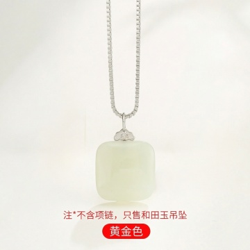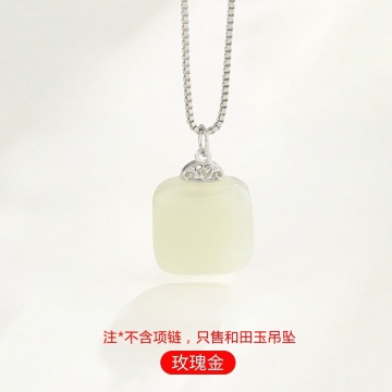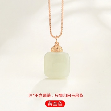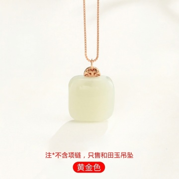 将项链链身和吊坠的金色接头部分改成玫瑰金色,保留中间和田玉的颜色不变,保留图片中的文字'注*不含项链,只售和田玉吊坠'和'黄金色'不变,其他构图和元素保持原样