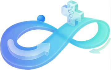 未来感医疗主题3D插画,融合科技蓝调与清透玻璃材质,轻拟物风格呈现药丸、DNA与注射器,象征精准医疗与健康科技。