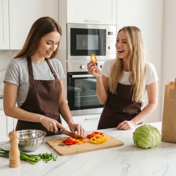 一张具有不同样式风格与配色的餐桌背景,桌面上铺着带有自然纹理的桌布,散落着各种新鲜的蔬菜和香草,整体呈现出温馨、自然的生活气息,光线柔和,色彩和谐,营造出舒适的用餐氛围,细节丰富,质感真实,具有强烈的视觉吸引力。