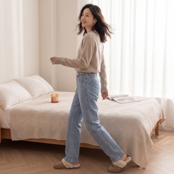简约主义风格,暖色系条纹毛衣搭配深棕A字裙,质感面料与自然光影营造优雅舒适的实景氛围,传递质朴而高级的秋日穿搭美学。