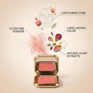 撕纸风拼贴杂志感,柔和粉调腮红轻盈绽放,清透雾面质感呼应时尚美学,营造高级柔美氛围。