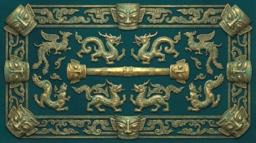复古中式3D重拟物门扉,鎏金浮雕狮环与铆钉细节,金属质感十足,古典韵味浓厚。