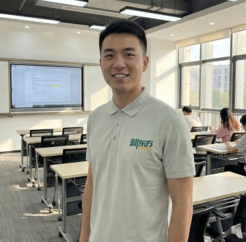 现代教室,简约扁平风设计,科技设备与彩色书籍交织,清新明亮,展现未来教育理念。