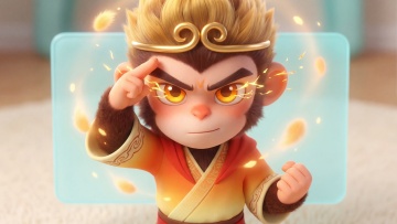 中国神话风格,哪吒位于画面中心,呈现向前俯冲的战斗姿态,一手紧握火尖枪指向前方,另一手手掌向前推出蕴含火焰的能量球,黑色长发随风狂舞,红色披风和混天绫在炽热气流中激烈飘扬,全身环绕金色火焰,脚踩风火轮喷射出耀眼火光。背景为翻腾的橙红色火山云与喷发的岩浆,云层边缘透出金色光芒,下方是燃烧的黑色山峦,整体画面具有强烈的动态感和史诗氛围,采用电影海报级别的3D渲染效果,高对比度,细腻的火焰纹理和烟雾效果,主色调为红、橙、金、黑,光影层次丰富,高光与阴影对比强烈,营造出炽热、激昂、充满力量的视觉冲击力。