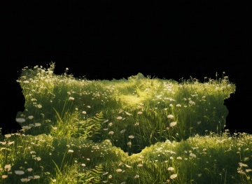 写实风格的石头与植物组合,高细节描绘,岩石表面有自然的纹理、裂缝和风化痕迹,覆盖着青苔和地衣,搭配各种小型绿色植物、杂草和白色小花,色彩真实自然,光影效果细腻,呈现出野外自然环境中的石头堆景观,具有立体感和质感,适合用于游戏场景或自然插画素材。