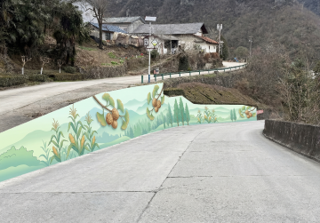 诗经画卷;淇河流淌、淇水汤汤,蒹葭苍苍形成主视觉画面;一条现代旅游公路蜿蜒在河岸,以公路和淇河为主,背景是竹子等自然景观,远景是少许连绵的青山,虚实结合。与诗意的自然景观和谐融合,整体画面以诗经画卷形式展示。
