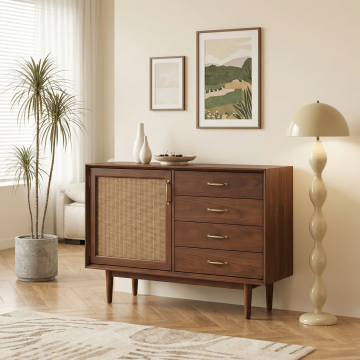 基于商品主体图 ,生成木质柜场景图,参考1场景参考图 的客厅场景,北欧风,相似度50%