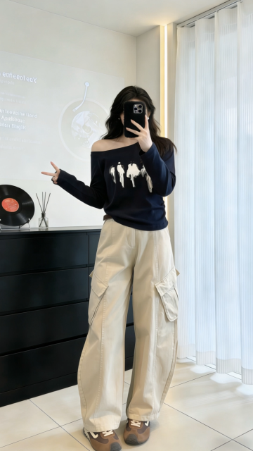人物对镜自拍,画面主体动态呈现,保持人物穿搭不变,手机全程挡脸,全程不露脸。人物首先微微向前走右手撩头发,然后右手自然下垂,最后微微往后退右手掐腰,回正身体。画面真实好看,自然,协调,不夸张。姿态柔美随性,整体动作流畅自然。不要出现第三只手,超清画质