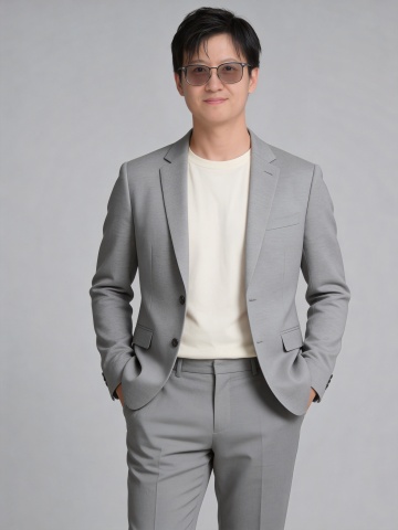 极简商务风肖像,灰白单色搭配,性冷淡美学,印刷质感背景,简约主义设计,凸显专业与沉静气质。