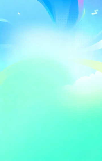 夏日主题海报,整体采用清新明快的蓝绿色渐变背景,点缀白色云朵图案,营造轻松愉悦的氛围。画面下方是绿色草地,点缀着白色线条勾勒的花朵、草丛和简约的卡通人物剪影。中央是一个正在奔跑的人物,用流畅的白色线条绘制,姿态动感十足。左上角和右上角保留云朵形状的留白区域,整体构图简洁,视觉层次分明,充满夏日活力与童趣。