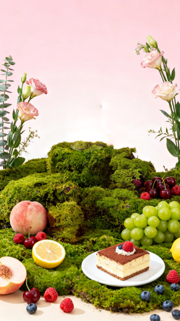 清新柔和的奶油蛋糕,点缀鲜果与白花,轻拟物风设计,实景感十足,营造甜蜜舒适的春日氛围。