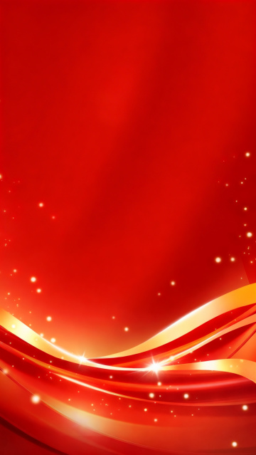 一张红色渐变背景的海报设计,整体呈现出从深红到亮橙红色的平滑色彩过渡,色彩和谐统一,充满热烈与庄重的氛围。画面底部有金色的光芒向上散发,形成温暖明亮的光源效果,光线柔和地照亮底部区域,产生自然的高光和渐变阴影。右上角有几组细密的白色曲线线条,呈放射状排列,线条流畅轻盈,为简洁的背景增添了精致的装饰感和一丝动感。背景整体采用大面积的留白设计,信息传达效率高,视觉层级清晰,以纯色渐变和简约线条作为主要视觉元素,营造出大气、正式且具有现代设计感的视觉效果,适合作为具有庆典、正式活动或重要宣传目的的海报背景,目标受众广泛,设计符合大众对庄重与热烈氛围的审美期待。