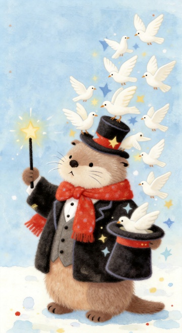 卖火柴的小女孩 水彩风插画,温馨梦幻的冬夜街景,卡通女孩手握火柴,暖黄灯光与飘雪交织,手账风细节,印象画派光影,节日氛围浓厚。