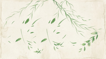 清新淡雅的水彩风格插画,以大面积纯净白色作为背景,营造极简留白的意境,左上角垂落数枝嫩绿的竹叶,叶片呈现柔和的渐变绿色,边缘略带模糊的晕染效果,几片细长的竹叶轻盈飘落,悬浮于画面中央偏下位置,整体色调明快通透,光影柔和,传递出宁静自然的清新感,构图简洁空灵,视觉焦点集中于飘逸的竹叶与留白空间的和谐平衡。