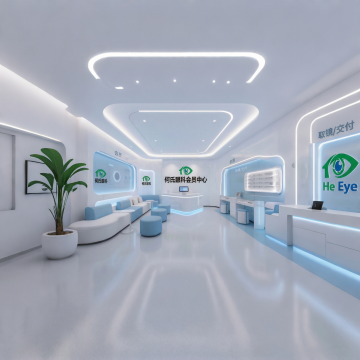 以“康雅Ai健康小屋”为牌匾,进店内首先第一个区域是前台接待区,前台旁边有两张圆桌与桌椅,有位接待人员在前台看电脑;店内第二个区域为AI检测区,设置智能检测设备与座椅,旁边墙上有个“康雅云门诊”的大屏;第三个区域有舱体理疗区域,老年人可躺着体验设备理疗;第四个区域是会议室。整体风格清新典雅,适合健康行业。
