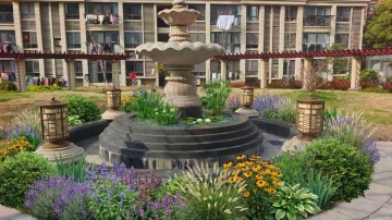 3D风虚拟自然景观,融合水彩与油画质感,呈现清新唯美的春日花园,柳树成荫,花影婆娑,营造舒适文艺的诗意空间。