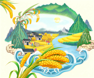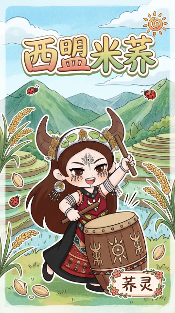 插画,苗族卡通小女孩,6个,浅蓝色背景