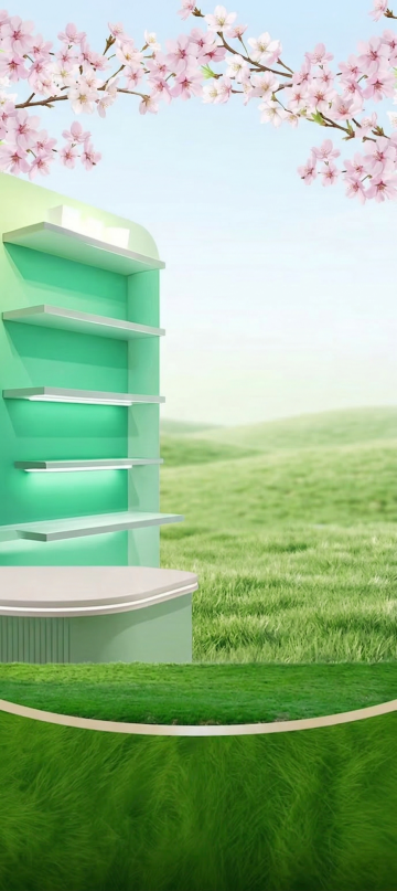 软3D风卡通人物置身樱花纷飞的超市场景,融合清新梦幻的春季氛围与促销信息,营造可爱温馨的购物体验。