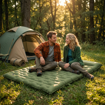 实景感十足的森林露营场景,光影斑驳,静谧自然。写实摄影风捕捉质朴户外生活,舒适与清新交织,展现人与自然的和谐共处。