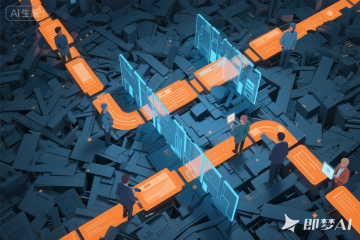 深蓝色背景上,以电路板纹理为基础,中央矗立着巨大的、立体发光的蓝色"AI"字母,字母内部有精细的电路纹路,周围环绕着流动的蓝色光效和闪烁的星点粒子,整体呈现出赛博朋克风格的科技感与未来感,具有强烈的视觉冲击力和深度感,营造出神秘而先进的氛围。