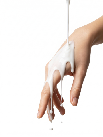柔和光线下,乳霜轻盈延展于肌肤,金丝缎面衬托奢华质感,轻拟物风呈现真实触感,优雅传递护肤仪式的舒适与精致。