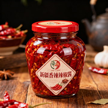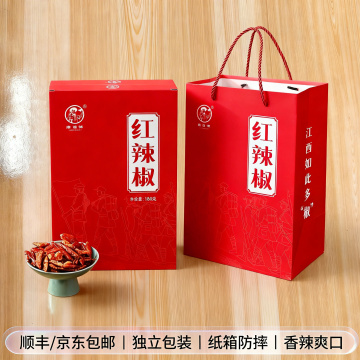 [主图 1 点击率首图] 康佬俵红辣椒产品主图,香辣脆口零食。高饱和吸睛风格,食欲感满满。主体是红辣椒包装盒居中放置,前景摆放一碗装满酥脆红辣椒的青瓷高足碗,木质桌面背景,自然暖调逆光突出红辣椒油亮质感,红辣椒表面芝麻颗粒清晰诱人。主标题文案"香辣爽口 康佬俵红辣椒" 红色加粗无衬线字体,左上角悬浮。右上角标签文案"顺丰/京东包邮"红色底白色字。底部四个卖点横向排列"独立包装 | 纸箱包装不易变形 | 香辣酥脆 | 原产地直供",字体黑色,整体构图左文右图平衡,1:1构图,背景全屏无边框,高饱和红色调,专业品质感,符合淘宝天猫平台规范。