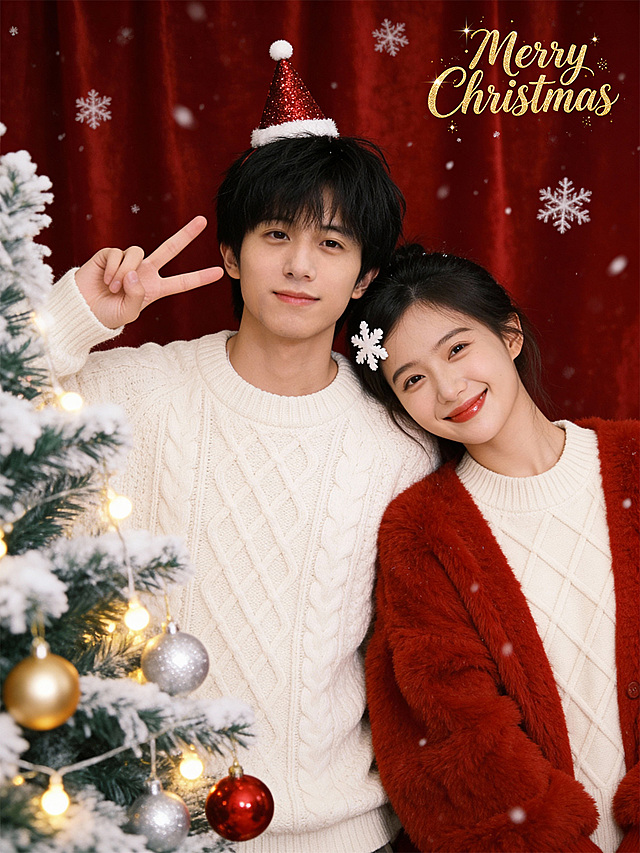 圣诞温馨双人合影写真照详情