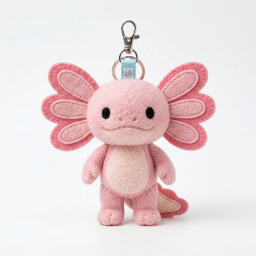粉嫩软3D风拟人蝾螈挂件,毛发生长质感,卡通萌趣设计,柔和舒适视觉,可爱动漫风格,节日赠礼首选。