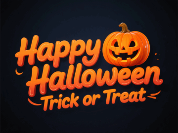 橙色软3D大字“不给糖!就捣蛋!”搭配南瓜与糖果,卡通风格浓郁,趣味十足,营造甜蜜又俏皮的万圣节氛围。