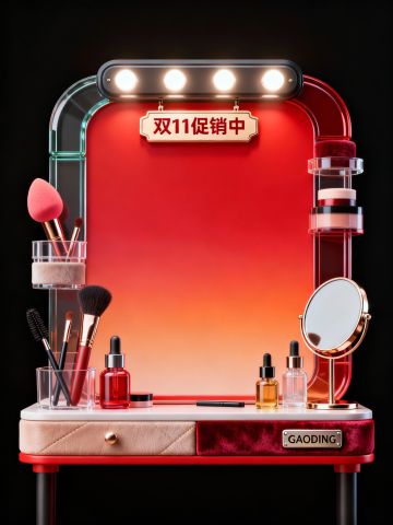 3D玻璃风数字“11”闪耀夺目,鎏金礼盒与璀璨烟花烘托喜庆奢华氛围,重拟物设计搭配时尚美妆产品,尽显节日盛典感。