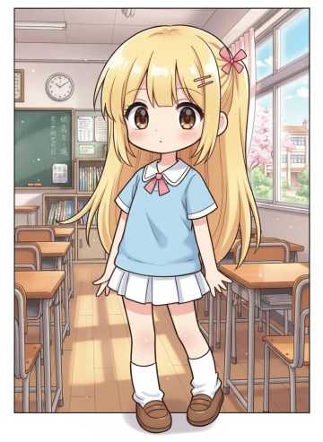 清新甜美动漫风,少女校服阅读,简洁线条展现青春活力。