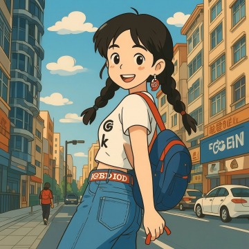 清新柔和的插画风少女,卡通感十足,水彩质感背景,手账风细节,T恤上的四叶草呼应幸运主题,整体洋溢舒适与治愈氛围。