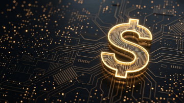 未来感与科技感交织的3D重拟物风格,金属质感金币悬浮于虚拟现实界面之上,霓虹蓝光勾勒数据图表,象征商务金融的强势增长。