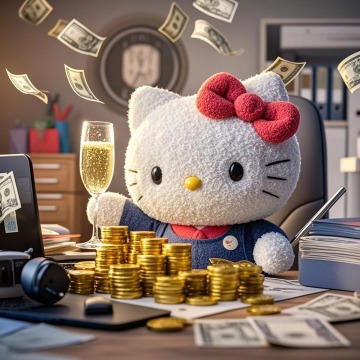 软3D风拟人化Hello Kitty办公场景,毛发生长质感搭配商务元素,温馨可爱中透出趣味感,展现职场萌趣新视角。