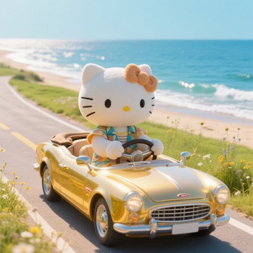 软3D风拟人化Hello Kitty少女,融合可爱与时尚感,毛发生长细节精致,塑料质感搭配卡通元素,营造甜蜜温馨的潮流氛围。