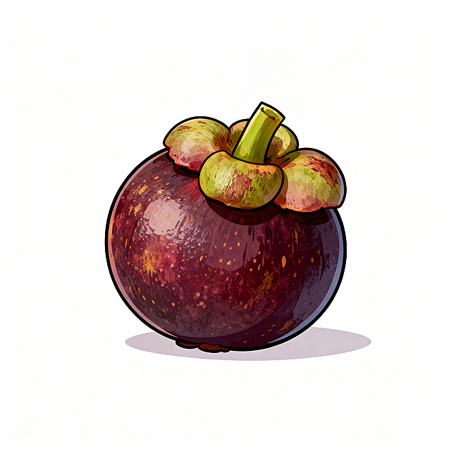泰国进口山竹商品主图,纯白背景,完整带果柄新鲜紫皮山竹,居中展示,光影清晰,适合电商销售,突出果型圆润果皮鲜亮详情