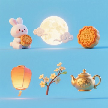 玉兔坐云端捧心月,粉白绒毛配桂花糕香,满月映玫瑰,3D 萌系演绎中秋,将团圆甜蜜揉进童话般的治愈氛围。