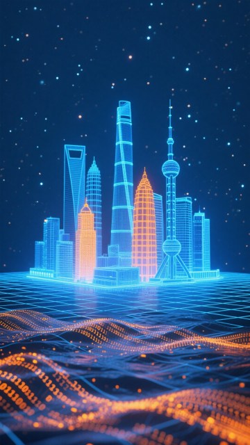 1. 特写镜头,6个规整排列的垂直构图,纯深蓝色背景上,上海中心大厦被解构为几何棱柱体堆叠,表面覆盖流动的霓虹蓝光线纹理,底部是镜面般的水纹倒影,整体呈现冷静的科技感。 2. 等距视角,6个2×3网格排布,纯紫色背景中,东方明珠电视塔被抽象为三个球体与流线型塔身的组合,球体内部填充渐变粉紫色光斑,底部倒影呈现扩散状波纹,营造梦幻氛围。 3. 俯视角度,6个圆形框架布局,纯靛蓝色背景,外滩建筑群被简化为高低错落的几何轮廓,建筑顶部点缀金色线条,水面倒影呈现对称的几何图形,展现秩序美感。 4. 侧视剖面,6个水平排列,纯天蓝色背景,上海环球金融中心以梯形结构呈现,表面切割出菱形镂空,内部透出渐变蓝紫色光线,底部倒影呈现拉长的几何形态,体现结构美学。 5. 轴测投影,6个六边形网格排布,纯深紫色背景,金茂大厦被解构为多个嵌套的八边形结构,每层边缘添加发光线条,倒影呈现阶梯状渐变,突出建筑韵律感。 6. 动态视角,6个对角排列,纯蓝紫色渐变背景,陆家嘴建筑群以流动的曲线连接,建筑轮廓线呈现波浪状起伏,倒影与主体形成镜像流动效果,展现城市动感。
