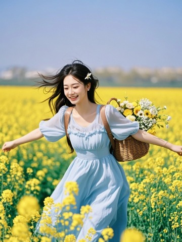 清新唯美的春日写真,柔光洒落,花瓣飘飞,油画风与水彩感交融,文艺浪漫中透出舒适实景感,光影交织间尽显温柔诗意。