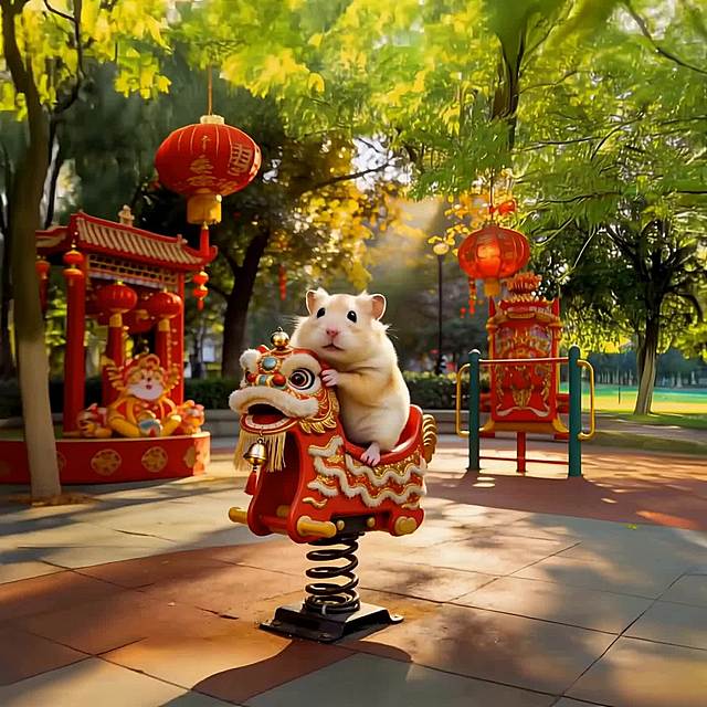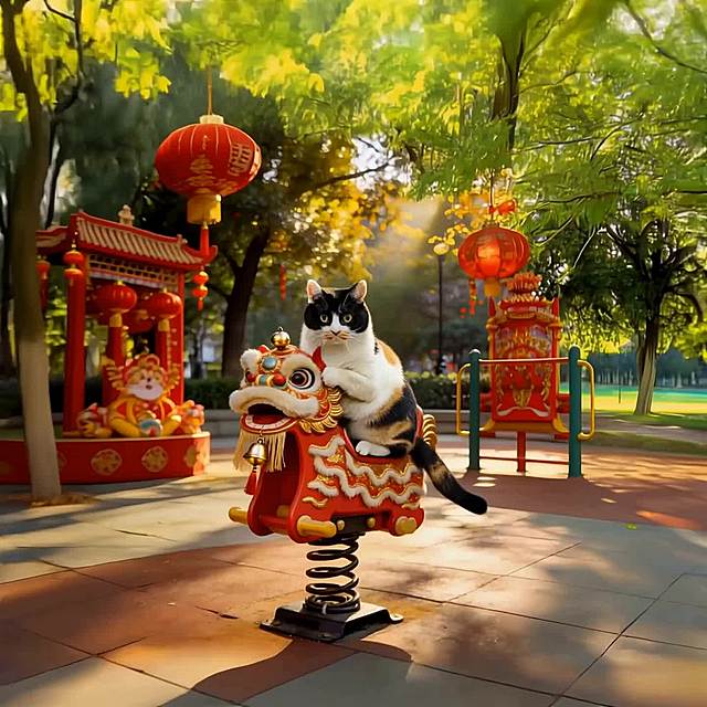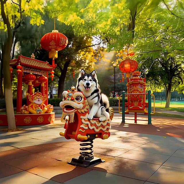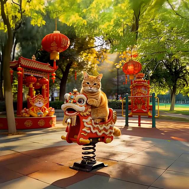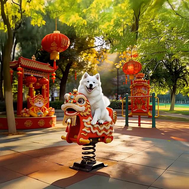 一只柯基犬穿着金黄色加红色镶边的宠物舞狮服,在纯白色背景下开心奔跑,吐舌微笑,服装的狮头造型和波浪纹裙摆清晰可见,画面清晰明亮,突出服装整体版型。 俯视角度拍摄:穿着舞狮服的猫咪趴在红色新年地毯上,狮头帽端正戴在头上,服装的金色绒毛质感和红色装饰细节清晰,背景简洁干净,突出产品萌趣感。 正面平视:穿着舞狮服的中小型犬(如泰迪)站立在纯色背景前,服装的立体狮头造型和蓬松裙摆完整展示,表情活泼,营造喜庆氛围。 🎬 场景图提示词 新年家庭场景:穿着舞狮服的狗狗在贴有春联、福字的客厅里,周围摆放着年货和红灯笼,主人伸手互动,营造热闹温馨的春节氛围。 户外街拍场景:穿着舞狮服的柯基在挂满红灯笼的古巷里散步,路人投来微笑目光,背景是古色古香的中式建筑,突出服装的节日吸睛效果。 宠物聚会场景:多只猫狗穿着同款不同尺寸的舞狮服,围坐在红色新年主题的野餐垫上,周围散落着鞭炮造型玩具和红包,展现服装的猫狗通用性和节日氛围感。 拜年互动场景:穿着舞狮服的狗狗蹲坐在长辈脚边,长辈手持红包准备投喂,背景是中式实木家具和新春插花,传递春节拜年的喜庆感。 🔍 详情图提示词 材质细节:特写舞狮服的金色绒毛面料,展示加厚保暖的质感,红色镶边的缝线细节清晰,旁边放着一个软尺,体现服装的厚实做工。 版型细节:平铺展示舞狮服,标注领口魔术贴、裙摆松紧带、四肢开口的设计,旁边搭配一只狗狗模特的上身效果小图,突出服装的易穿脱和贴合性。 尺寸对比:不同尺码的舞狮服整齐排列,旁边放着对应体型的猫狗剪影(如吉娃娃、英短、柯基),清晰展示尺码适配范围。 动态细节:穿着舞狮服的狗狗在草地上小跑,抓拍裙摆随动作摆动的效果,展示服装的灵活性和不束缚特点。详情
