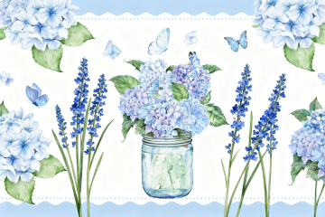 清新治愈的水彩花卉与蝴蝶无缝图案,包含白心橙黄雏菊、明黄色大丽花、紫色薰衣草穗、浅蓝尤加利叶及多种绿色枝叶,点缀橙黑帝王蝶、蓝黑蓝闪蝶,翅膀纹理细腻。水彩晕染色彩清新淡雅,过渡自然,叶片花瓣边缘带露水透明感,元素无规律均匀分布可无缝重复,营造宁静春日花园氛围