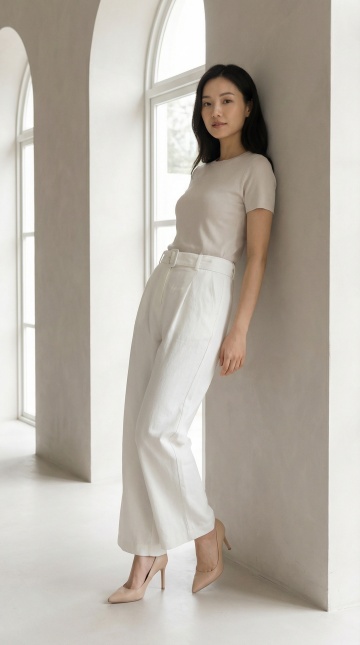极简风格,柔和色调,舒适面料质感,展现清新自然的性冷淡风穿搭美学。