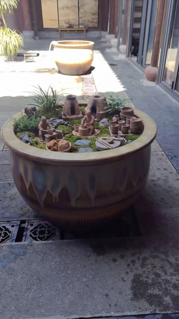 去掉现有黑色保护棚,新建足够高的红色钢架玻璃屋顶保护棚罩住整个石刻石头,石头保持原样不变,清理地面的杂草,保护棚不要围栏,保留画面中竹子、后方建筑等其他元素不变