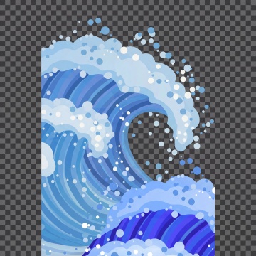 白色背景下的卡通风格海浪插画,画面中呈现出多道蓝色波浪,海浪形态动感十足,浪花边缘为白色且带有卷曲的细节,波浪由深蓝到浅蓝渐变,富有层次感,整体色彩清新明快,营造出海洋的活力与灵动氛围。