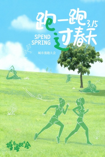 春日郊游插画,清新卡通风格,可爱小狗奔跑,舒适野餐氛围。
