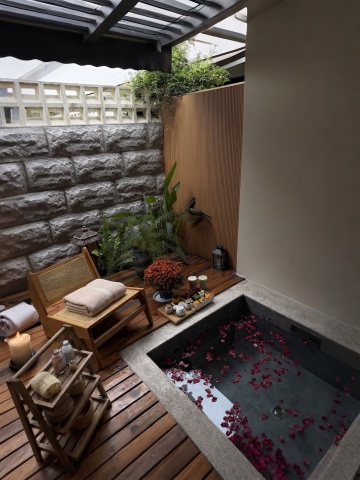 中国传统庭院,午后阳光透过茂密竹叶洒落斑驳光影,古朴竹编遮阳伞下,摆放着圆形木质矮桌和藤编灯笼,旁边配简约木椅,背景是白墙灰瓦的中式建筑和形态自然的假山石,地面铺着细小鹅卵石,整体呈现静谧禅意的东方美学氛围,色调以青灰、原木色和竹绿色为主,光影柔和,构图采用前景竹叶局部遮挡营造层次感,画面传递出悠然闲适的庭院生活意境。